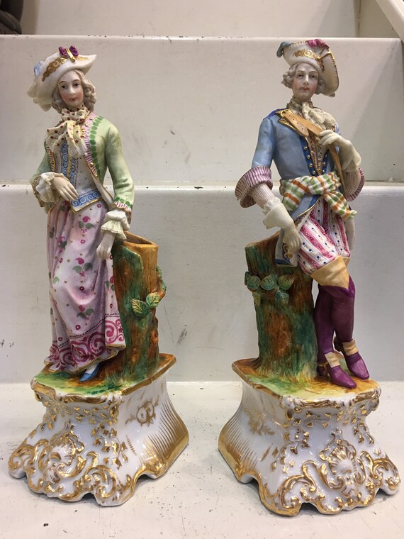 A dresden figurine scene 'chess game, lace is in perfect condition. Amazing huge carl thieme potschappel dresden porcelain urn, circa 1902/1918. It measures 8 long x 6 wide x 7 tall. Antique sitzendorf dresden lace porcelain figurine. Among the most delicate figurines on the antique market, dresden lace figures often feature porcelain lace and tulle that give these fragile pieces a sense of movement and realism. Two antique sitzendorf germany dresden porcelain lace ballerina figurines. Porcelain figurines were originally used as table decorations partly to demonstrate the wealth, prestige and influence of the host! In fact, the link between dresden and meissen is so close, particularly in the minds of united states and united kingdom collectors, that for years the more familiar word, dresden, was used to describe figurines and other porcelain pieces that had actually been produced in meissen. A blue crown dresden mark was registered by four ceramic decorators in 1883. The figurine is in great condition as pictured. Single pieces, various subjects, porcelain. There is some damage to the lace. Two dresden figurines, 6 h., together with two dresden figurines, 6 h., together with a dresden lamb, 2 1/4 h.